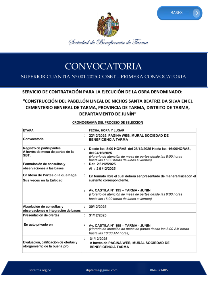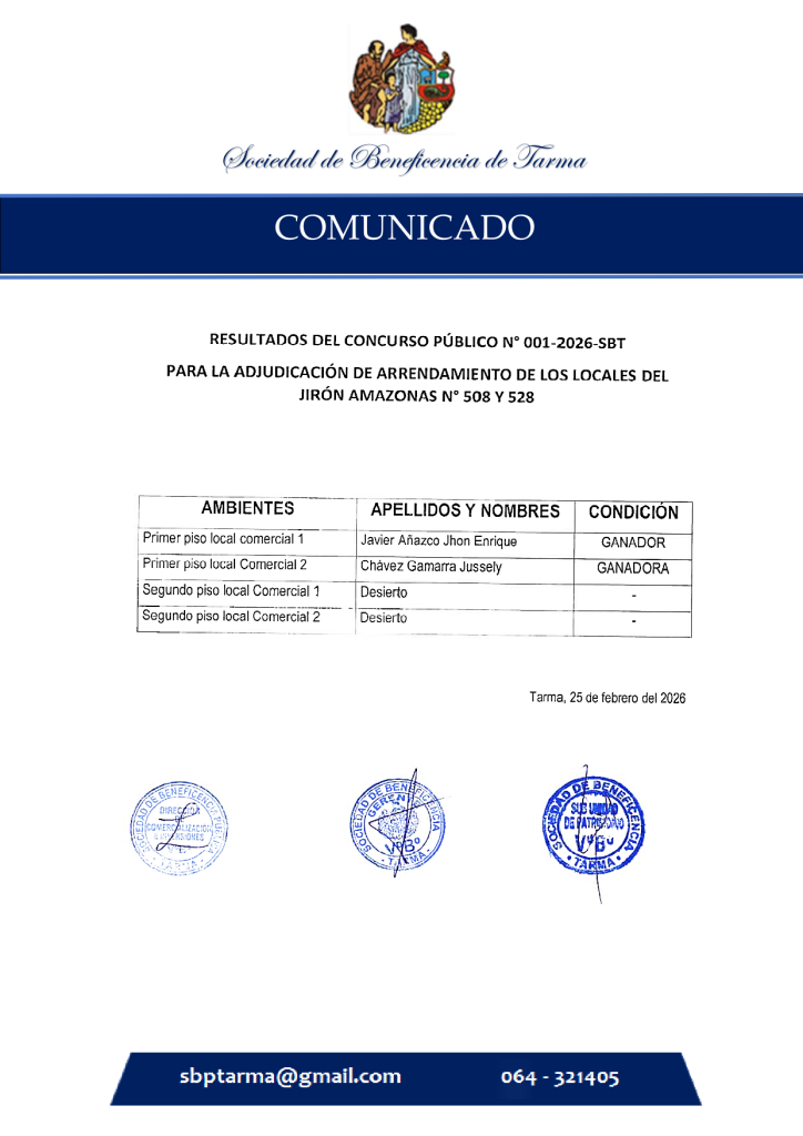 «CONSTRUCCIÓN DE AMBIENTES MULTIUSOS EN EL JR. AMAZONAS N°508 Y 528, PROPIEDAD DE LA SOCIEDAD DE BENEFICENCIA DE TARMA EN LA PROVINCIA DE TARMA – JUNIN»
